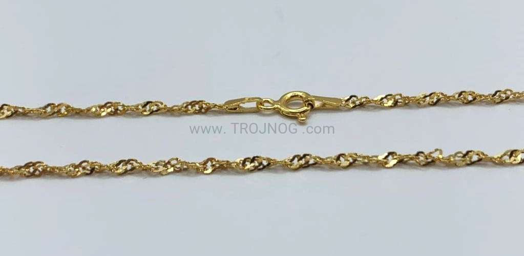 Delikatny pozłacany łańcuszek do medalików. Dedykowany dla kobiet, młodzieży ze względu na subtelny wzór, nie wplata się we włosy.