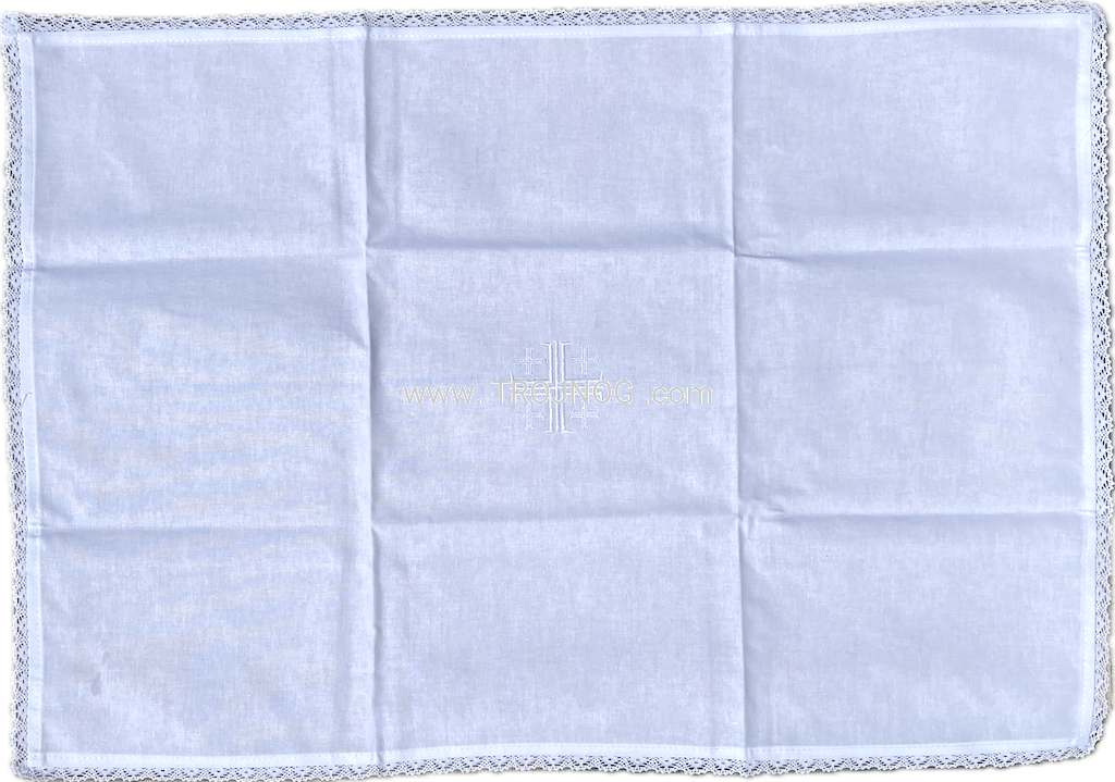 Duży korporał - 70x50 cm, haft biały Krzyż Jerozolimski, delikatna koronka, z bawełny