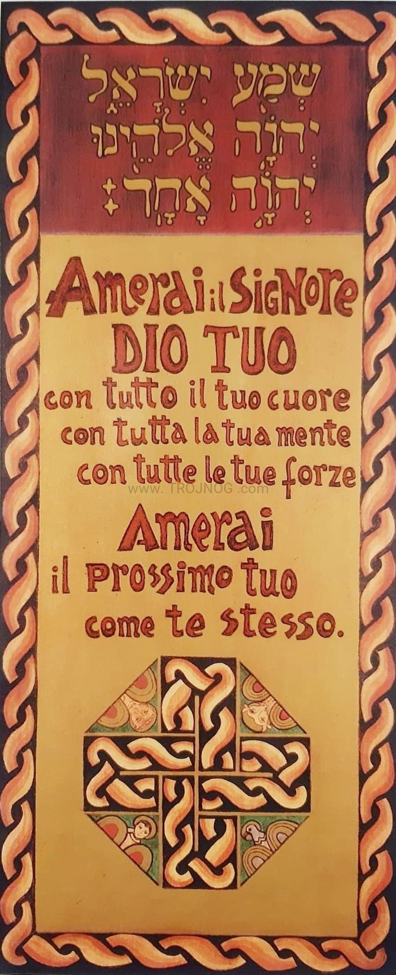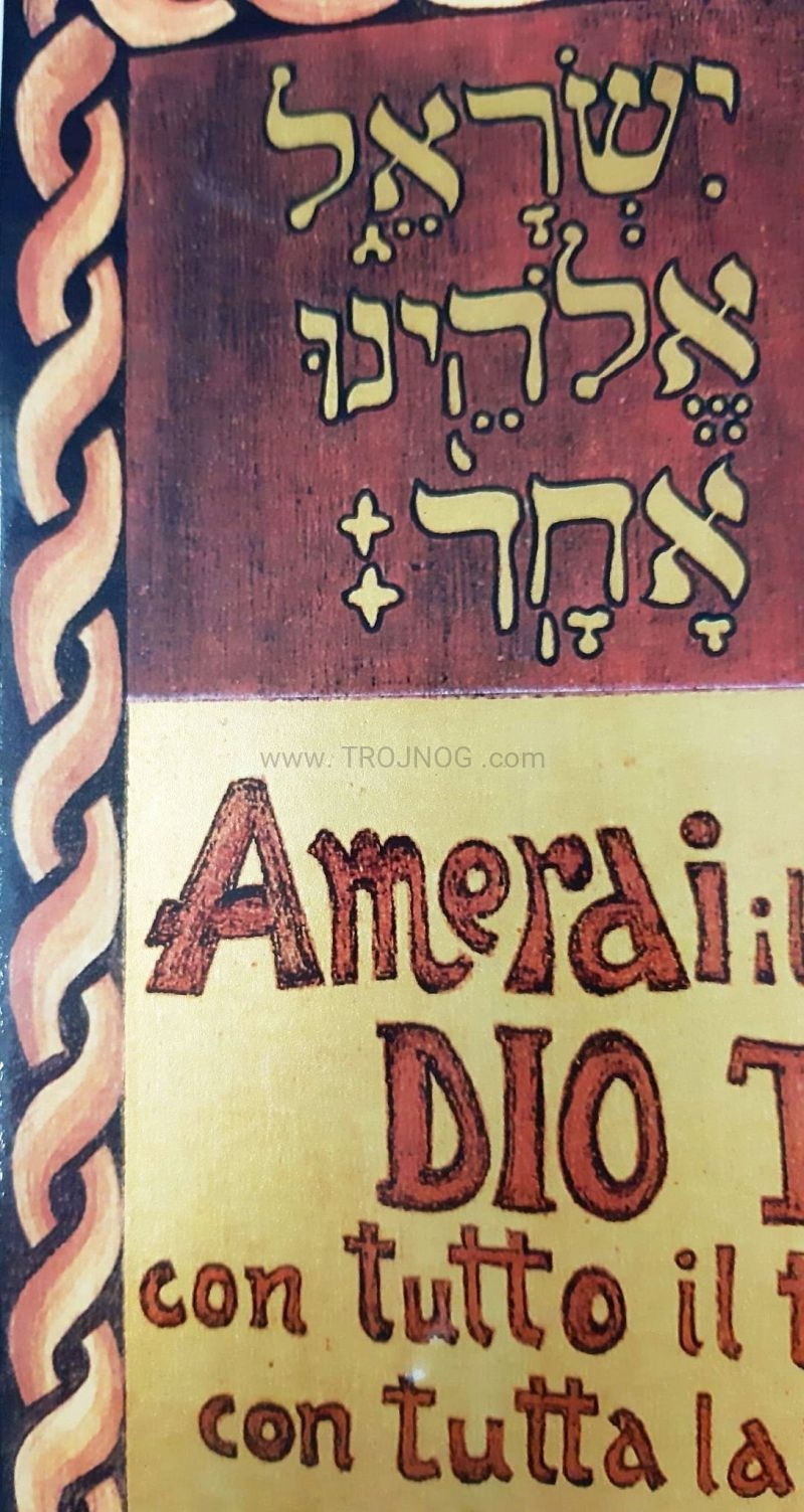 Pozłacana ikona Kiko Arguello "Shema Izrael", kochajcie Waszych nieprzyjaciół.