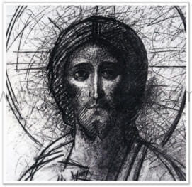 Ikona Kiko Arguello oblicze Jezusa Chrystusa z koroną chwały biało-czarny.
