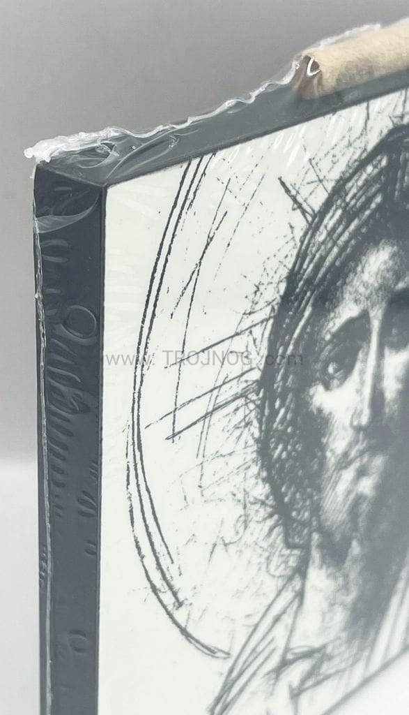 Ikonka drewniana, prezentowa. Wzór - Twarz Jezusa, z koroną chwały, biało/czarny.