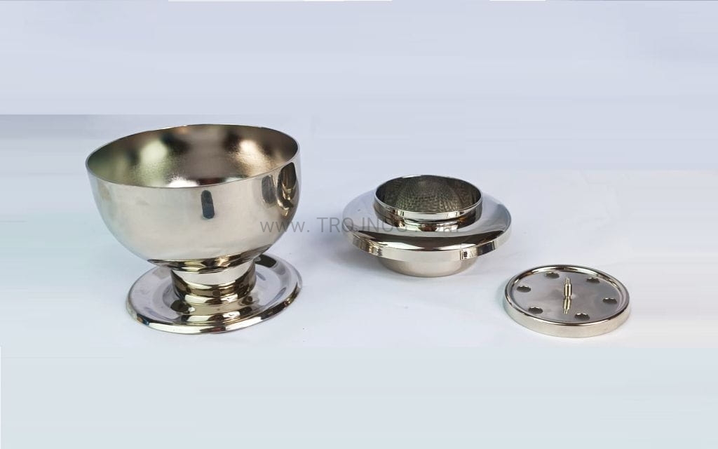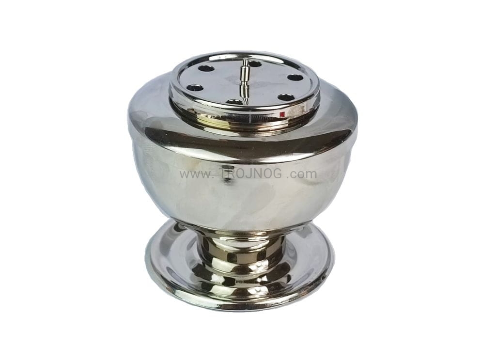 Kadzielnica, 3 częściowa, niklowana, stojąca, na podgrzewacz. Posiada zdejmowaną pokrywę oraz otwory zapewniające lepszą cyrkulację powietrza i dystrybucję zapachu.