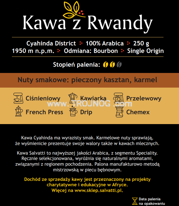 Ziarna kawy z Rwandy, Cyahinda, 100% arabica, 250g.