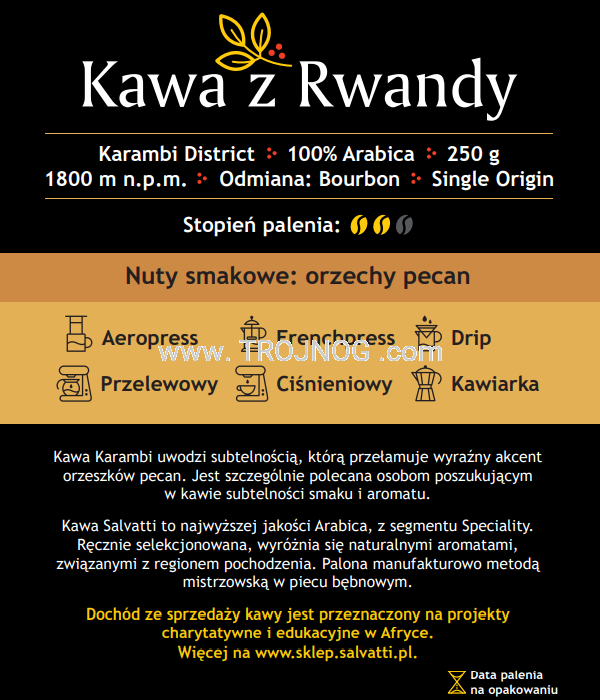Ziarna kawy z Rwandy, Karambi, 100% arabica, 250g.