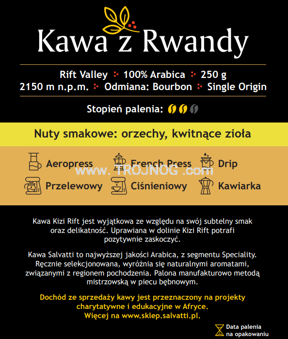 Ziarna kawy z Rwandy, Kizi Rift, 100% arabica, 250g.