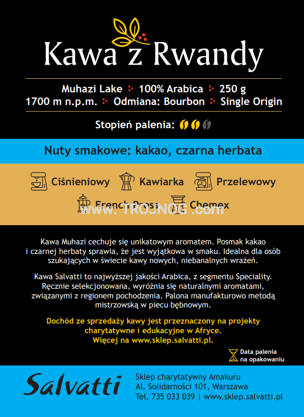 Ziarna kawy z Rwandy, Muhazi, 100% arabica, 250g.