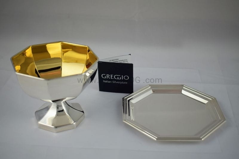 Taniej w zestawie!Kielich mały, ośmioboczny, posrebrzany, pozłacany wewnątrz.