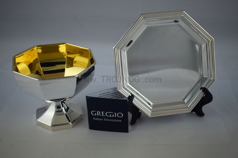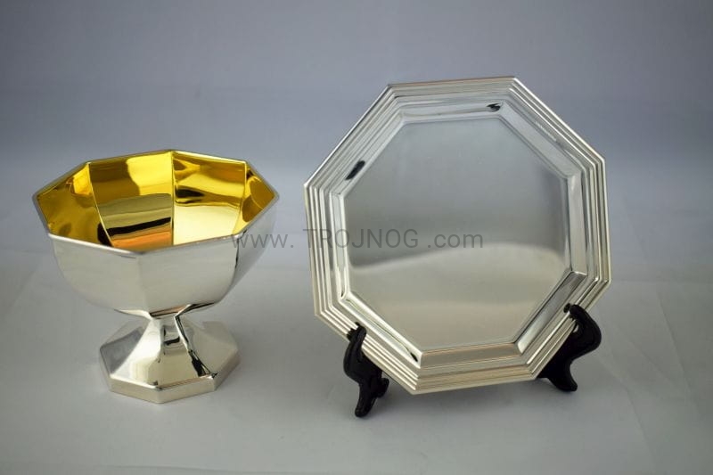 Taniej w zestawie!Patena mała, ośmioboczna, posrebrzana, do zestawu "misyjnego".