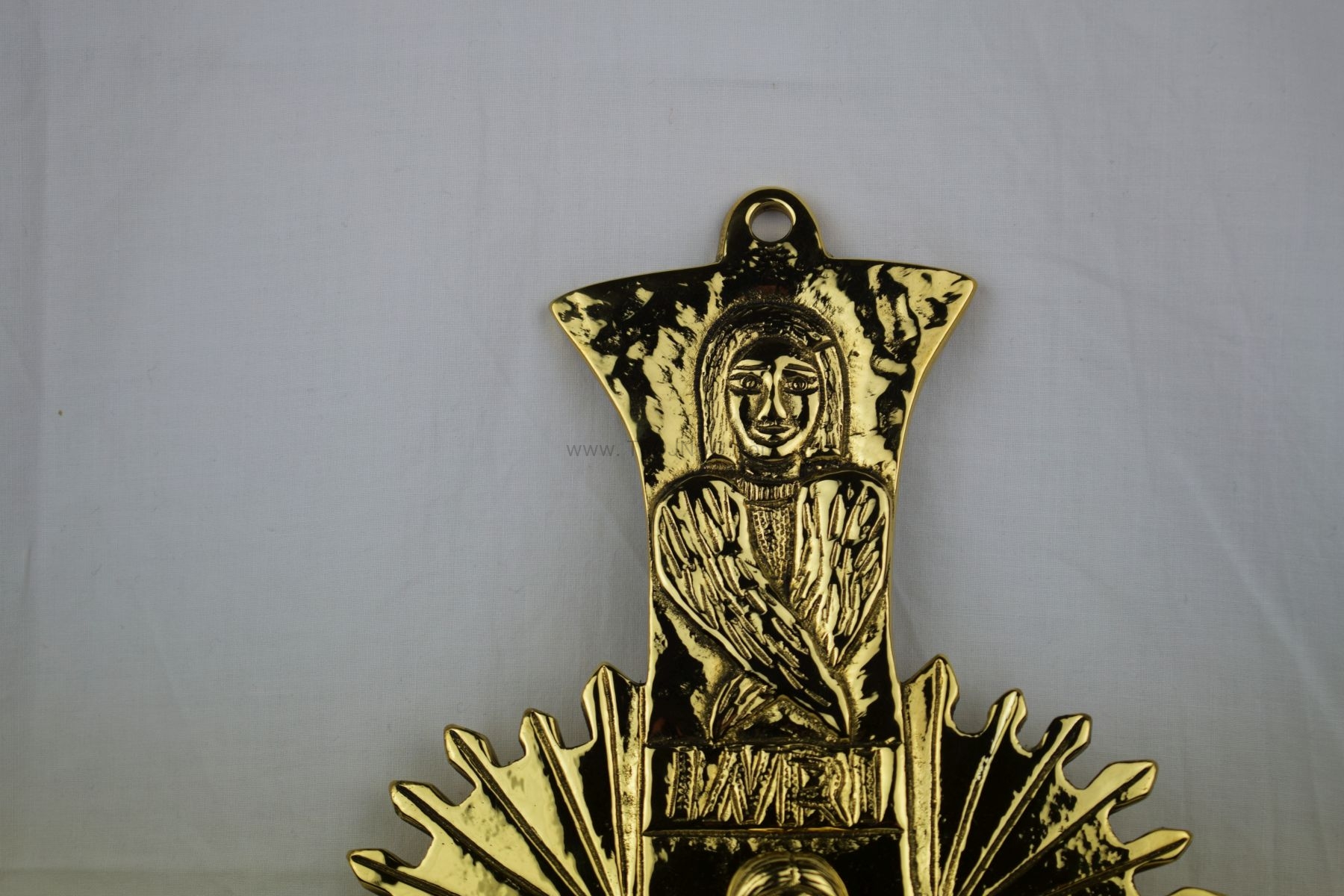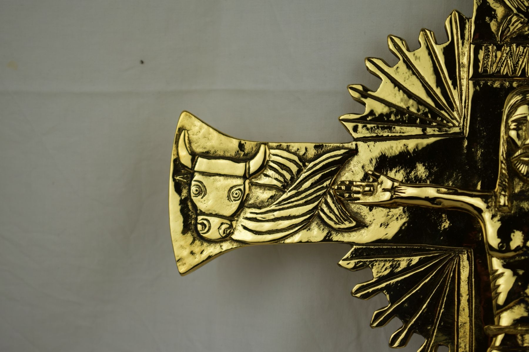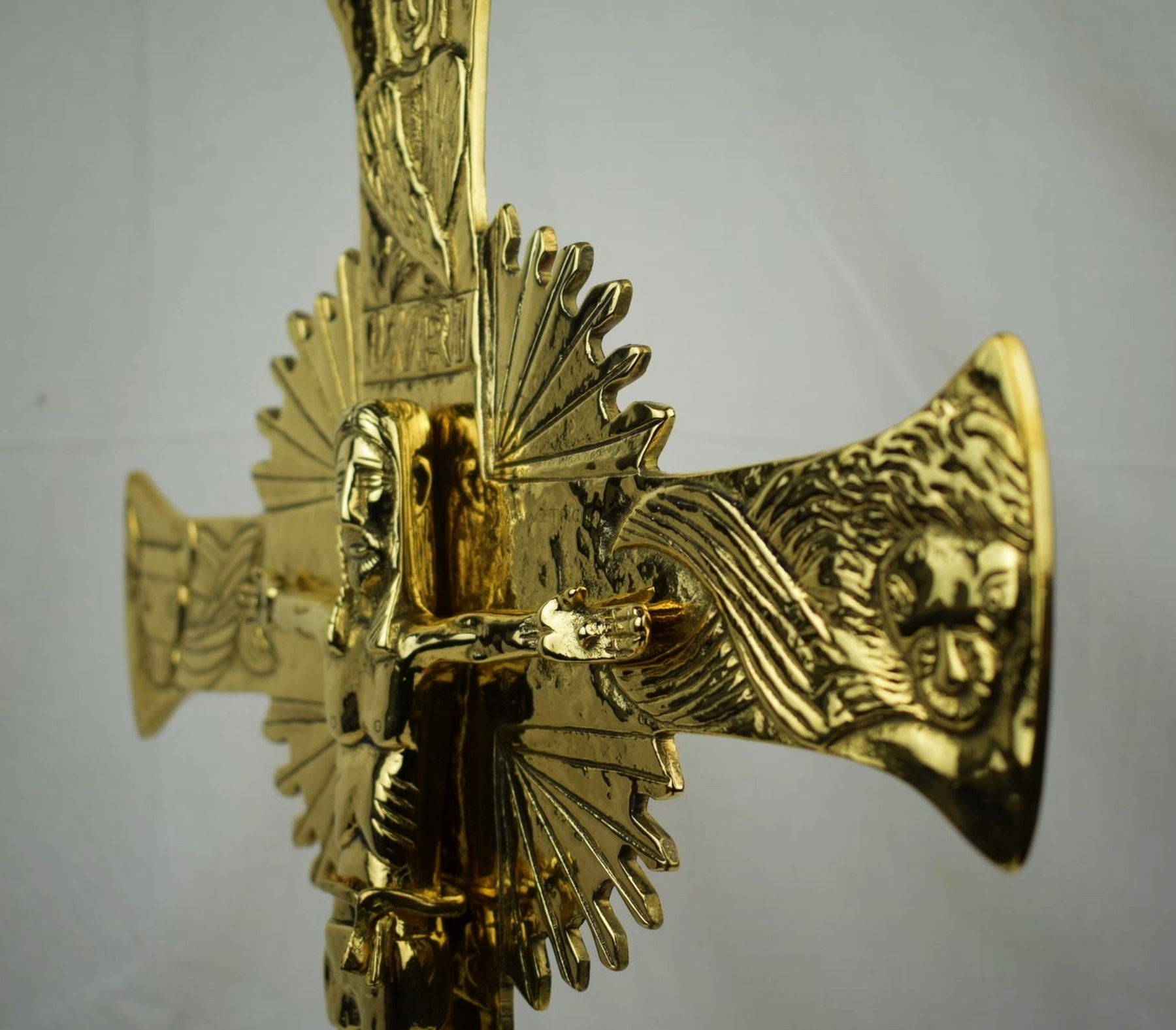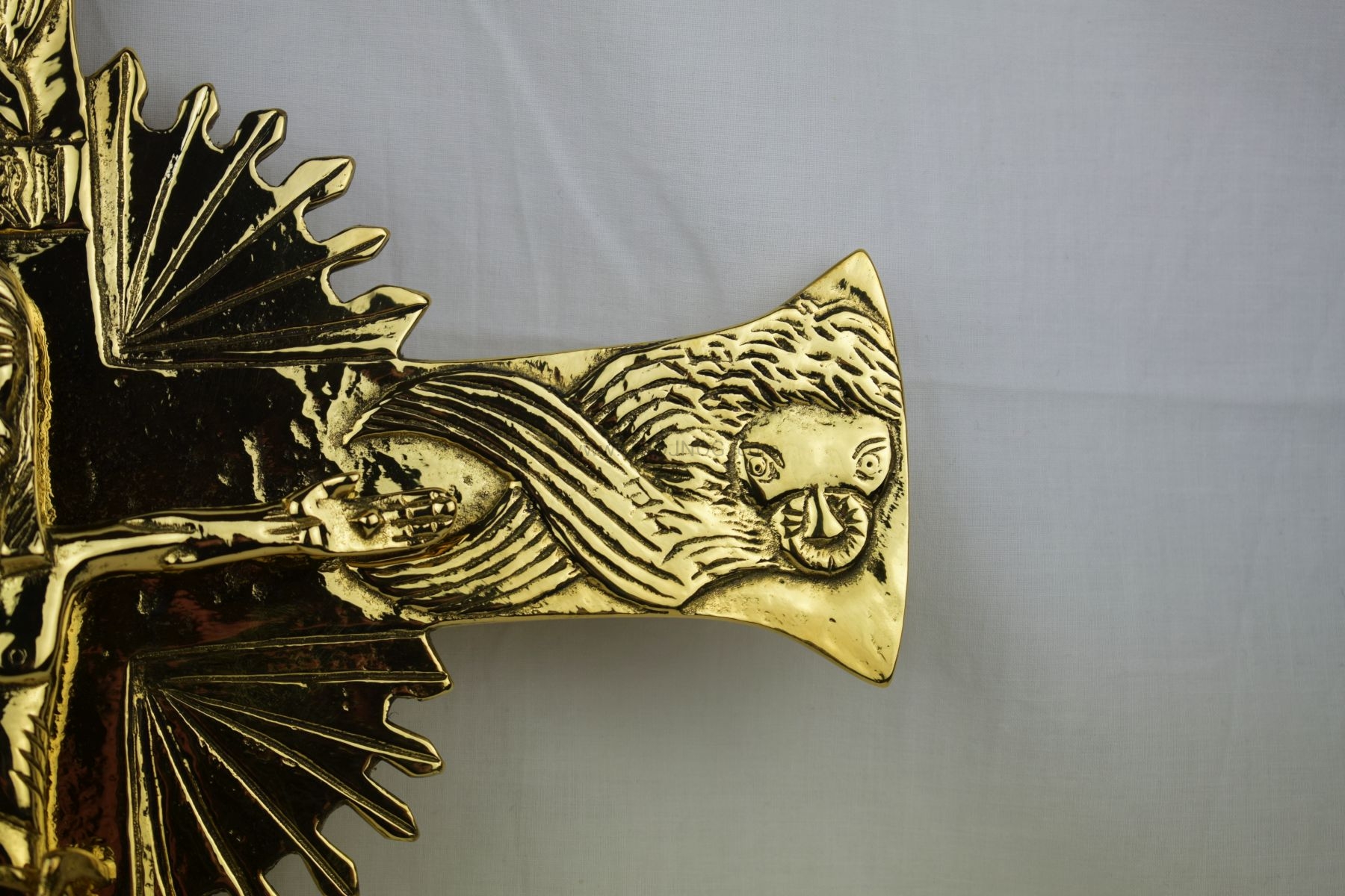 Krzyż do powieszenia na ścianę, mosiądz polerowany na wysoki połysk, zabezpieczony antyoksydacyjnie.