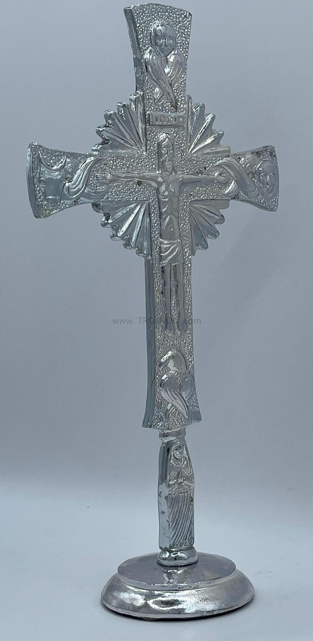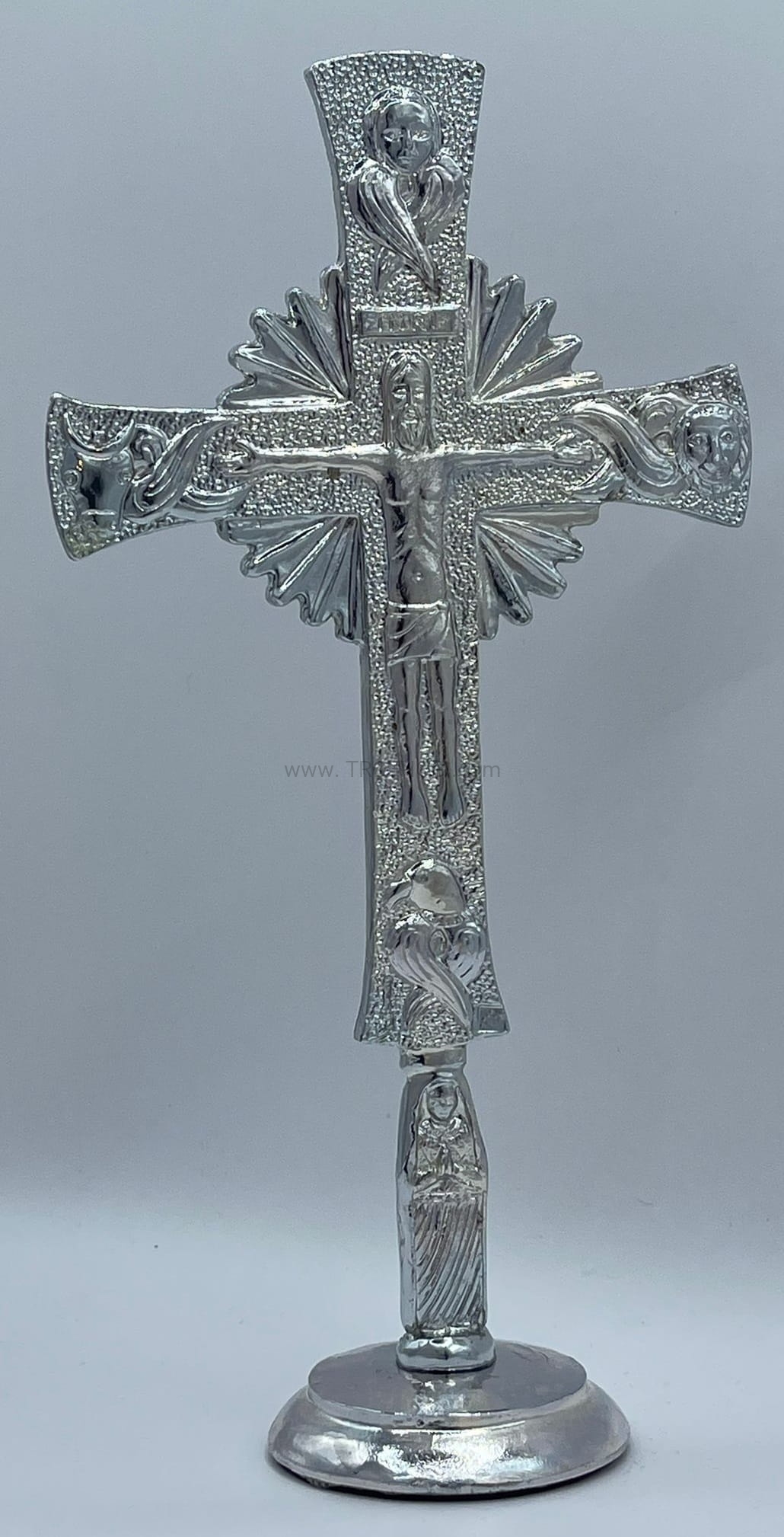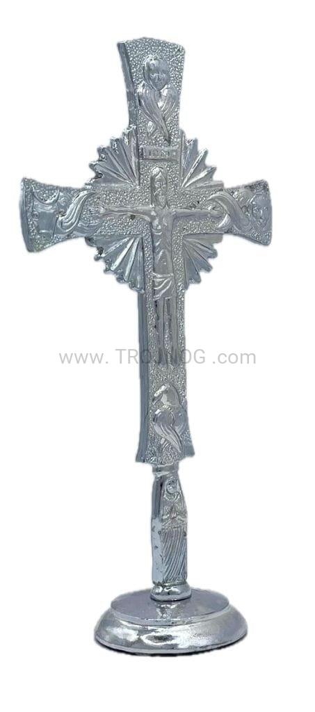 Krzyż na stół, chwalebny posrebrzany 20cm, alu, wysoki, dobra jakość, laudesy