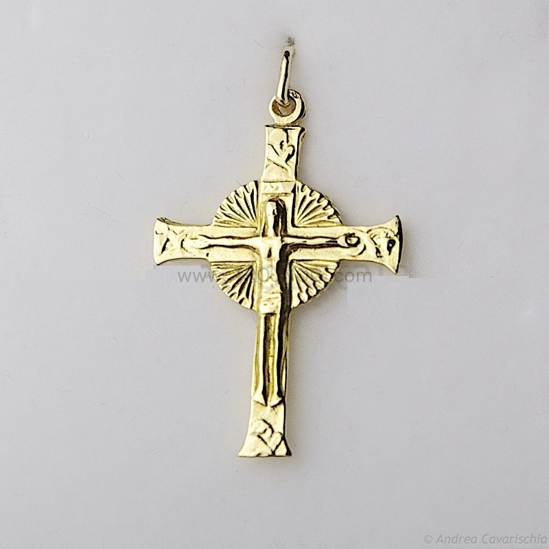 Krzyżyk na szyję, z żółtego złota - próba 750, wzór CHWALEBNY.
