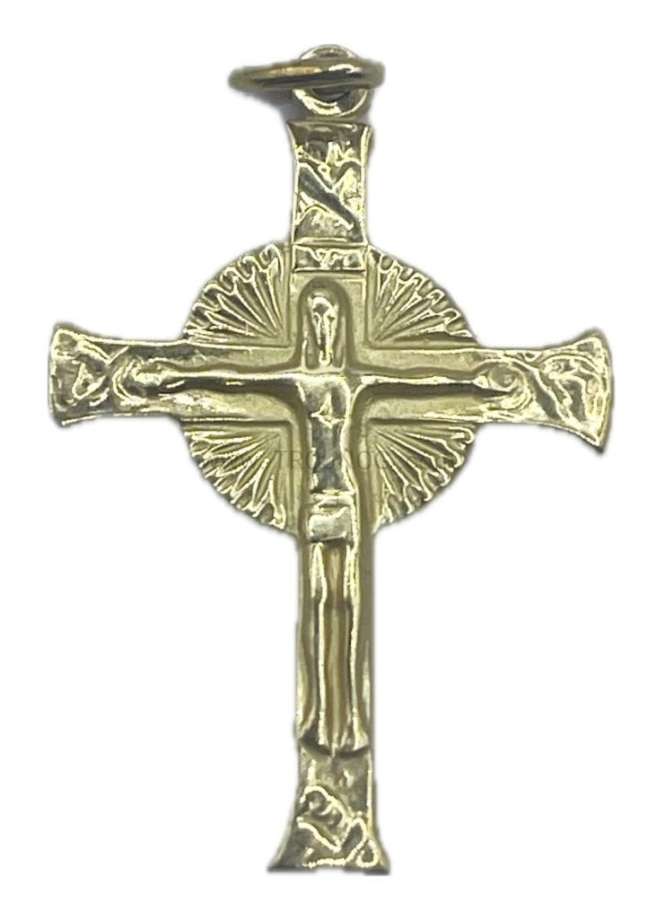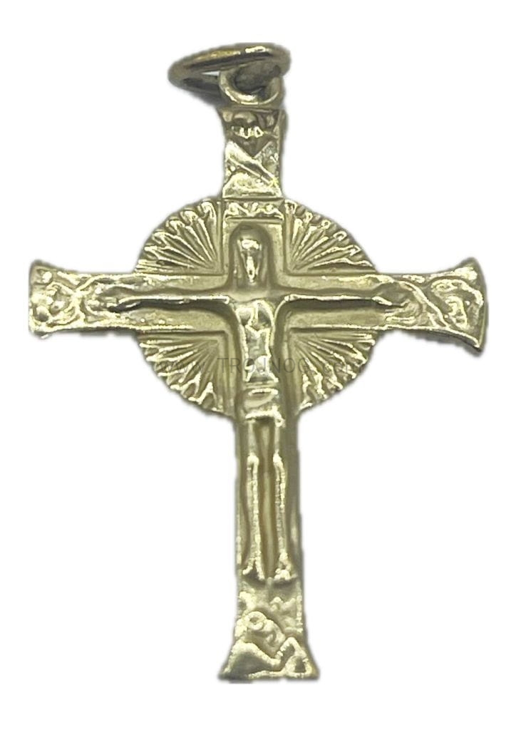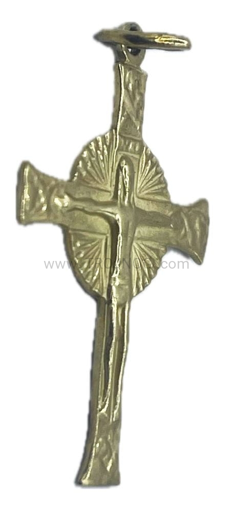 Krzyżyk na szyję, z żółtego złota (nie pozłacany), wzór CHWALEBNY, z tyłu gładki (nabita próba złota).