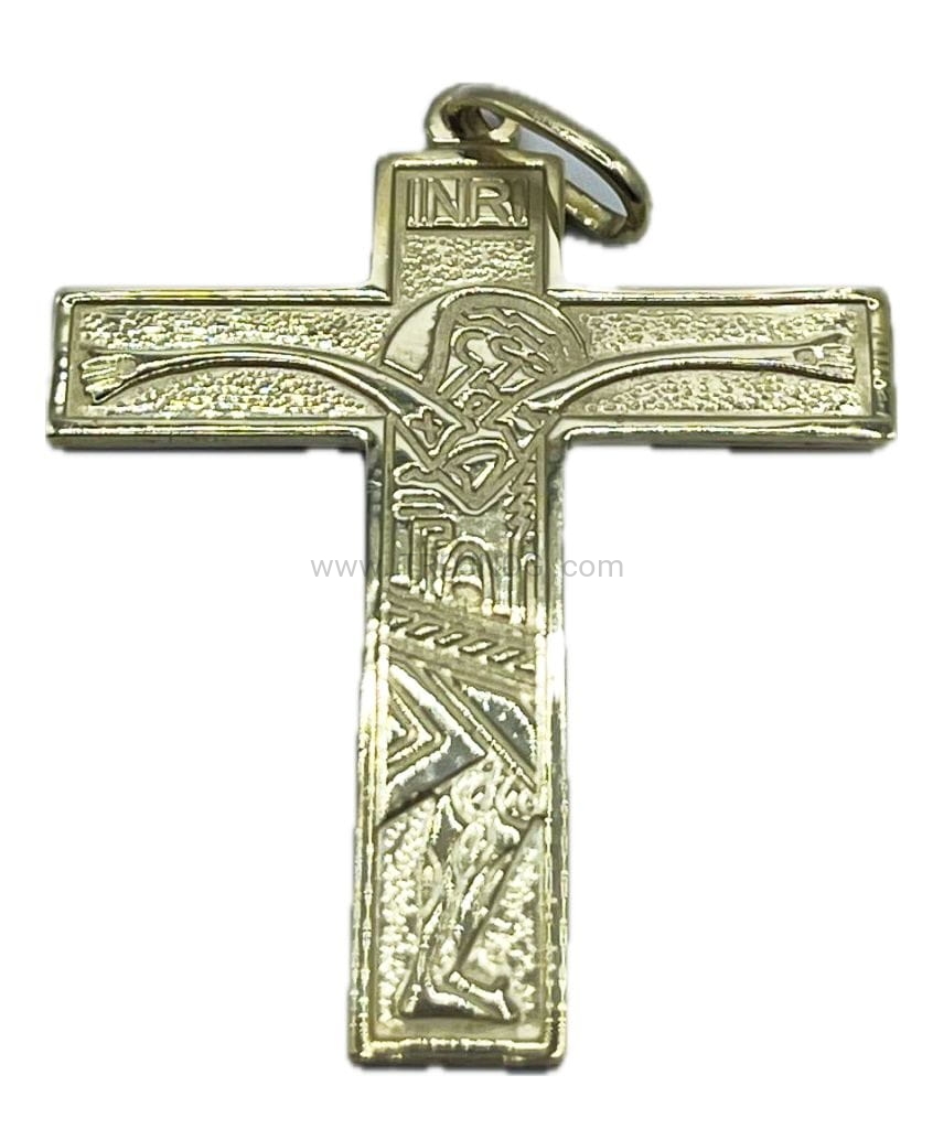Krzyżyk na szyję ze złota (z żółtego złota), „Rodzinny, Nowej Ewangelizacji”, duży.