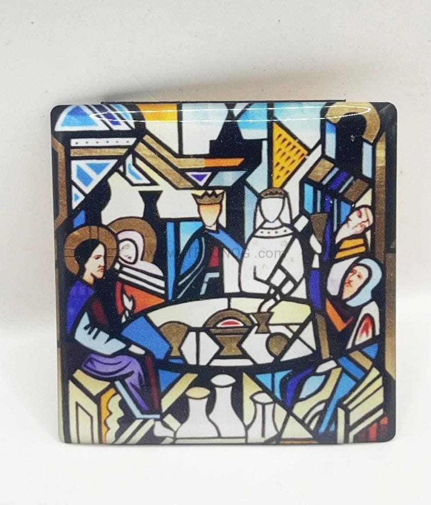 Magnes żywiczny, 5cm z ikoną zaślubiny, Kana Galilejska, gody, witraż, Kiko, naklejka