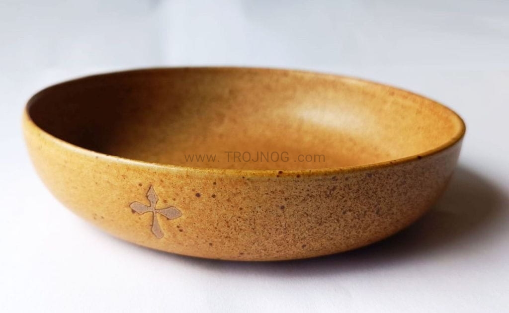 Miseczka, talerzyk na wodę, z kamionki, z krzyżem, rzemiosło, lavabo, lawabo