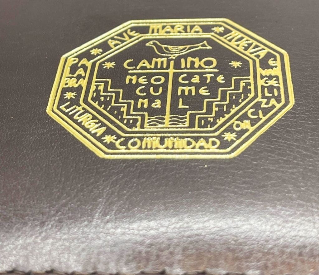 Okładka brązowa na Biblię Jerozolimską, ze złoconymi tłoczeniami, futerał, etui