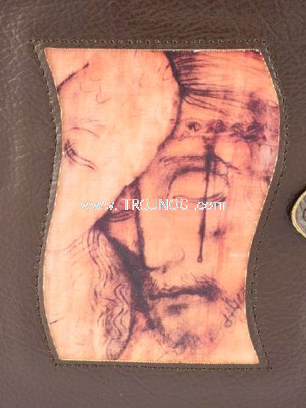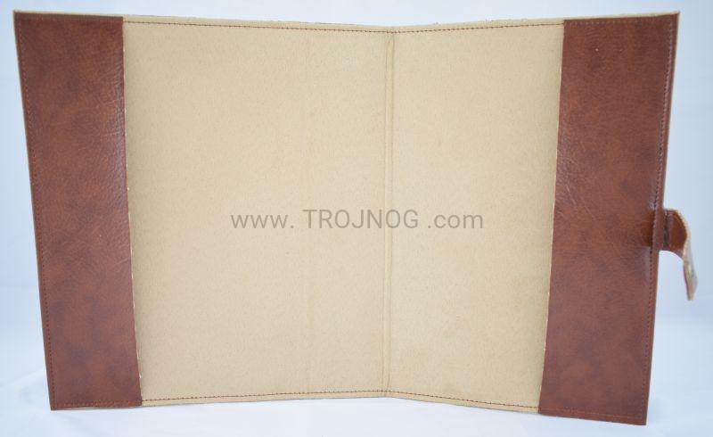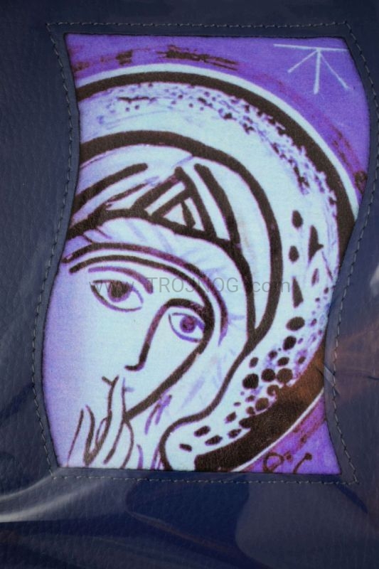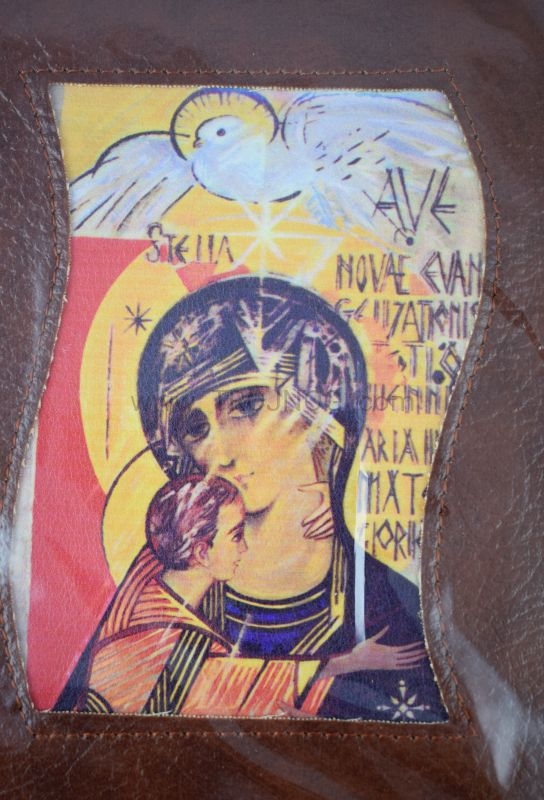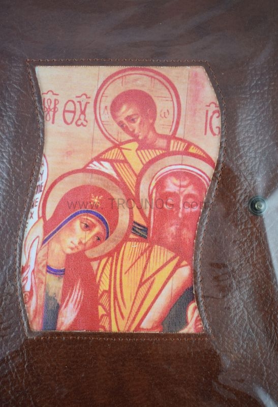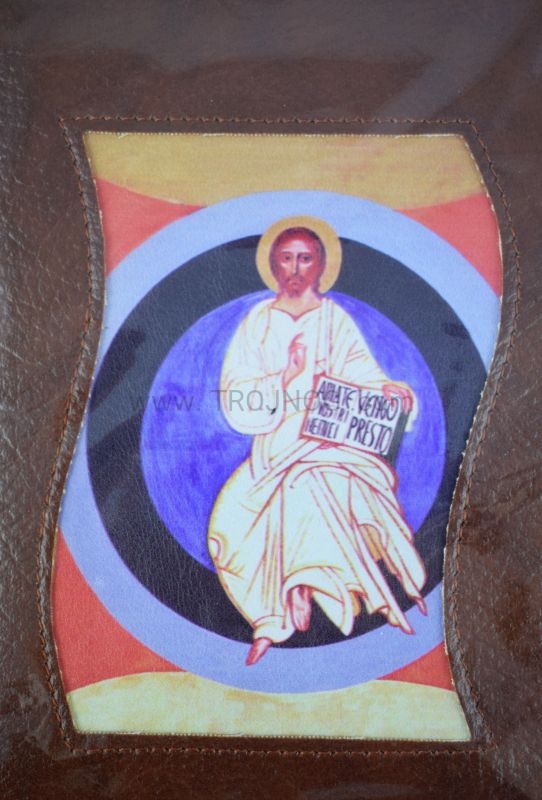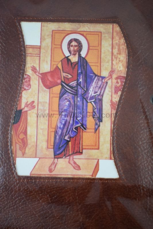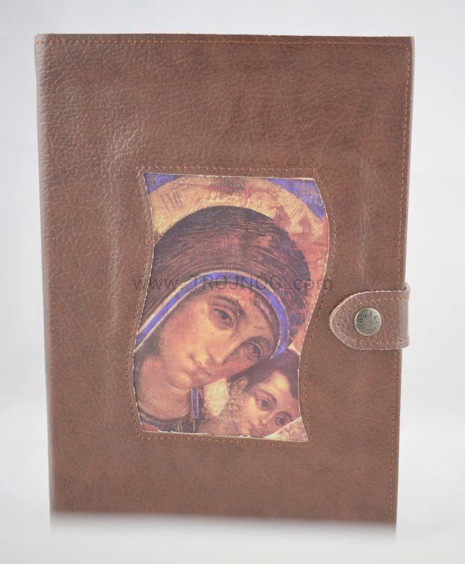 Okładka z prawdziwej skóry (kolor brązowy) z wszytą ikoną.