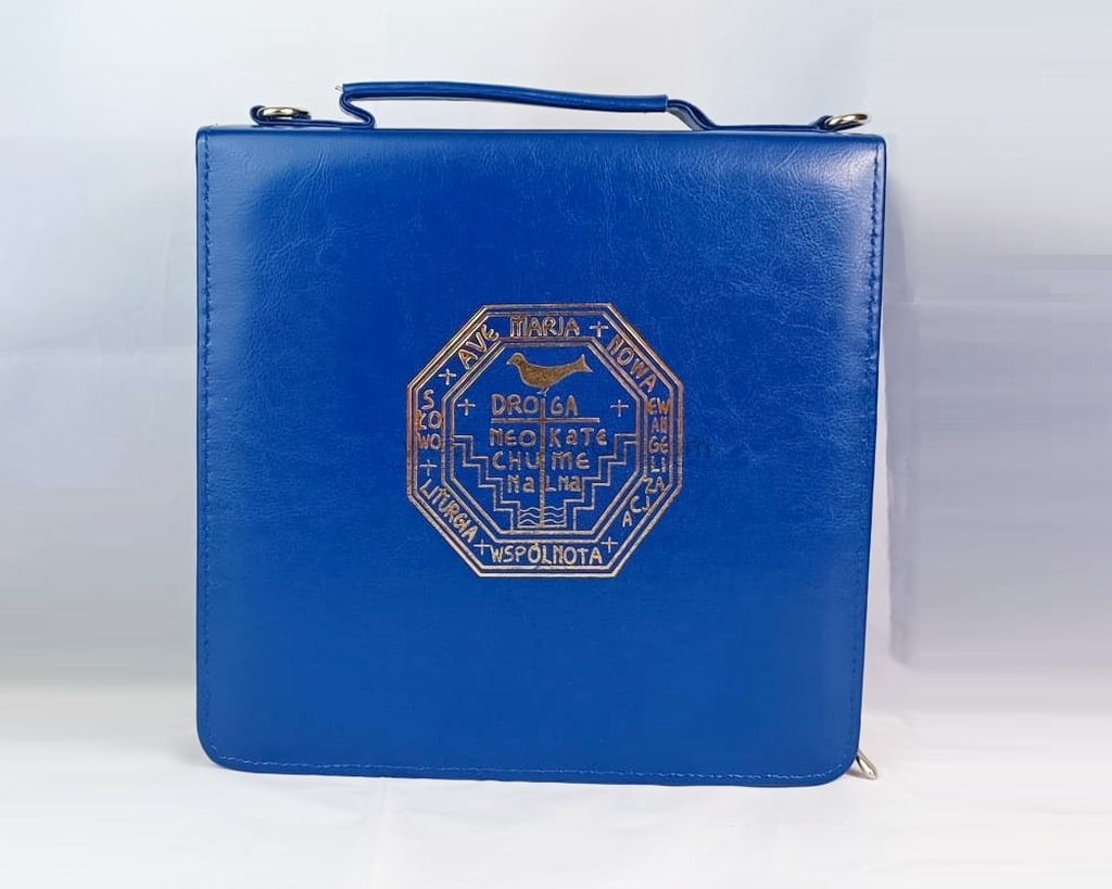 Pokrowiec na pieśni, na duży polski śpiewnik, z tłoczonym pozłacanym rysunkiem "ryby i krzyż", "Shema", lub "logo Drogi" polskie, lub hiszpańskie.