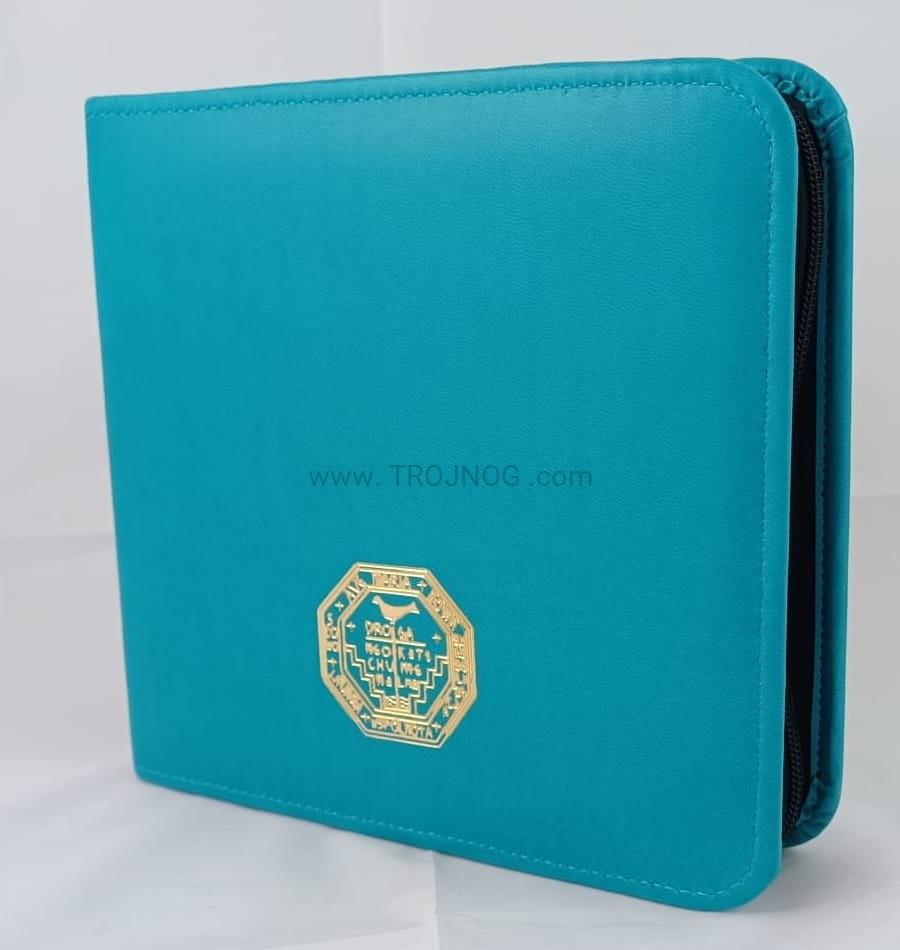 Pokrowiec na śpiewnik pielgrzymkowy, z pozłacanym tłoczeniem, turkusowy, z zamkiem, opakowanie, turystyczny, etui