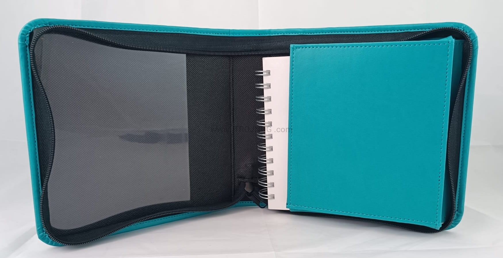 Kolor turkusowy, wewnątrz przezroczysta kieszeń oraz kieszeń na śpiewnik.