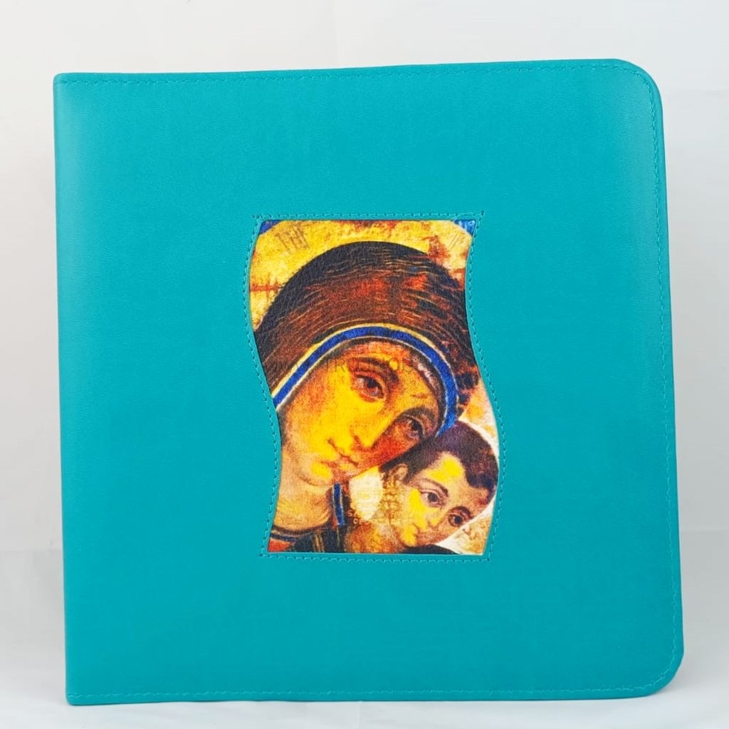 Kod produktu: custodia per canti tascabile RISUSCITO turistico turchese simipelle con icona Madonna