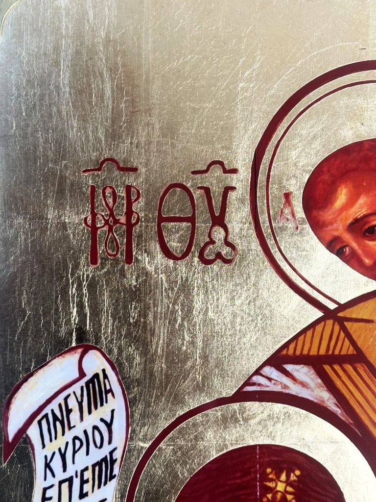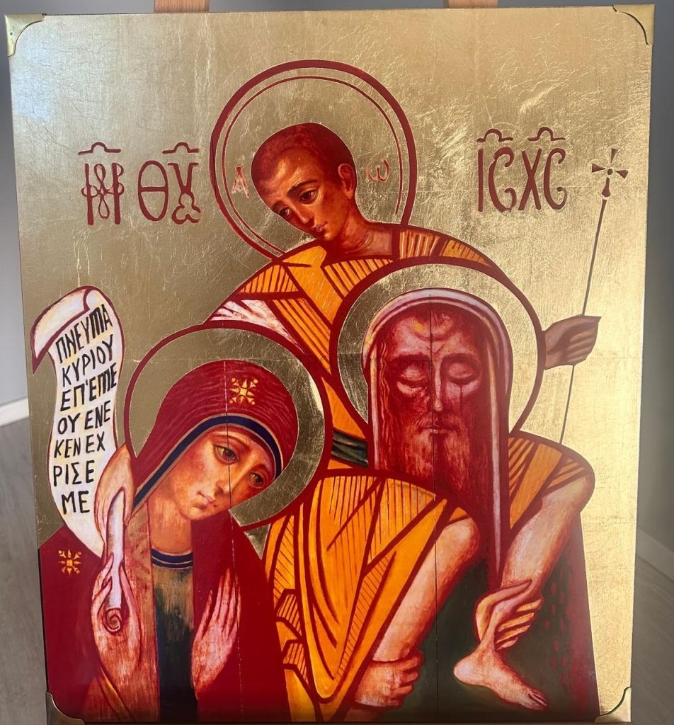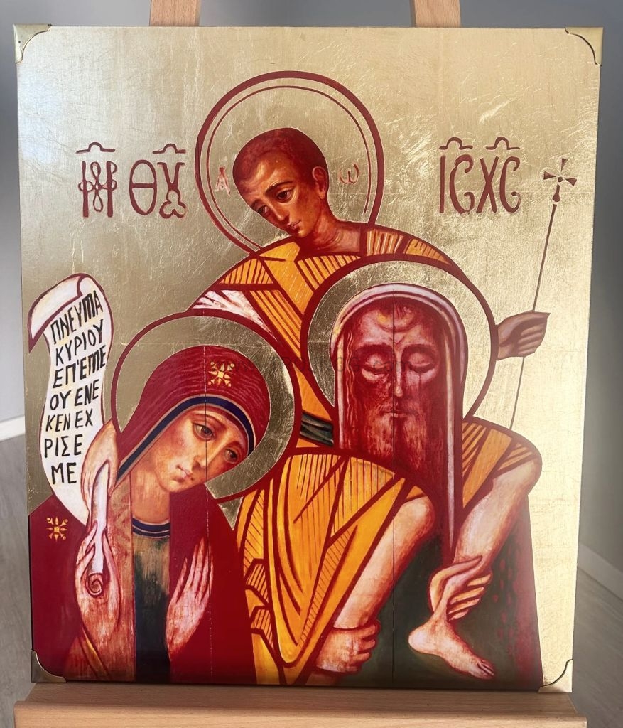 Ikona Kiko Arguello "Święta Rodzina z Rio". Wykończona złotą folią.
