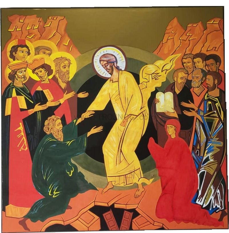 Pozłacana ikona Zstąpienie do Otchłani 30x30 cm korona misteryjna Perugia