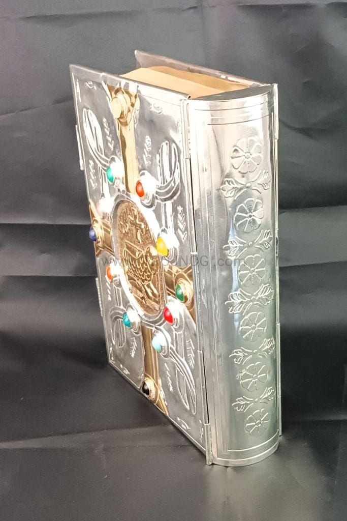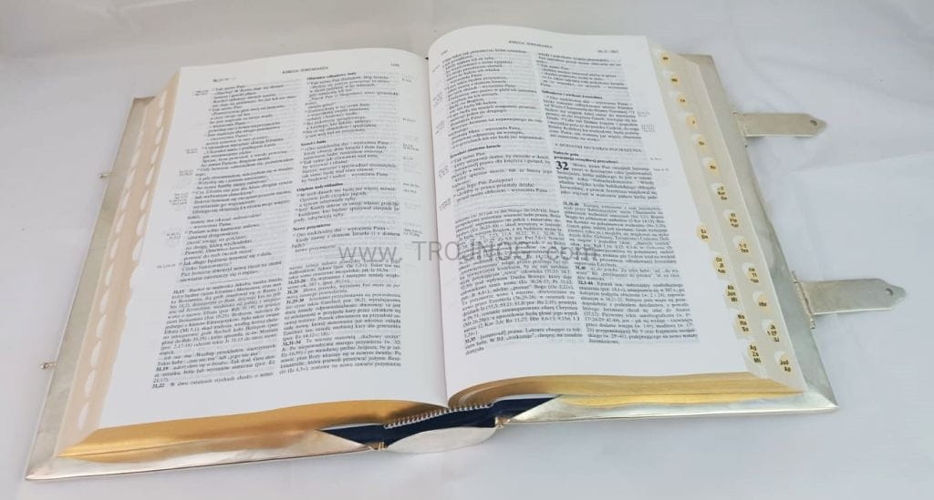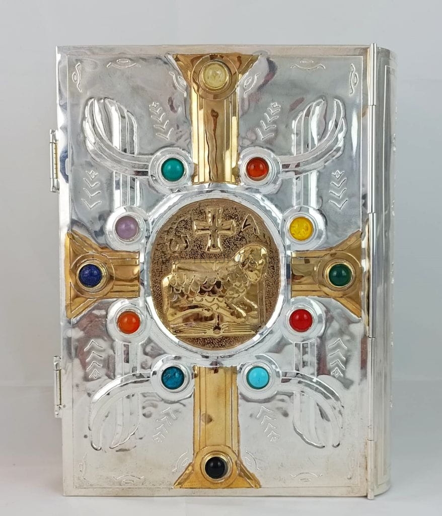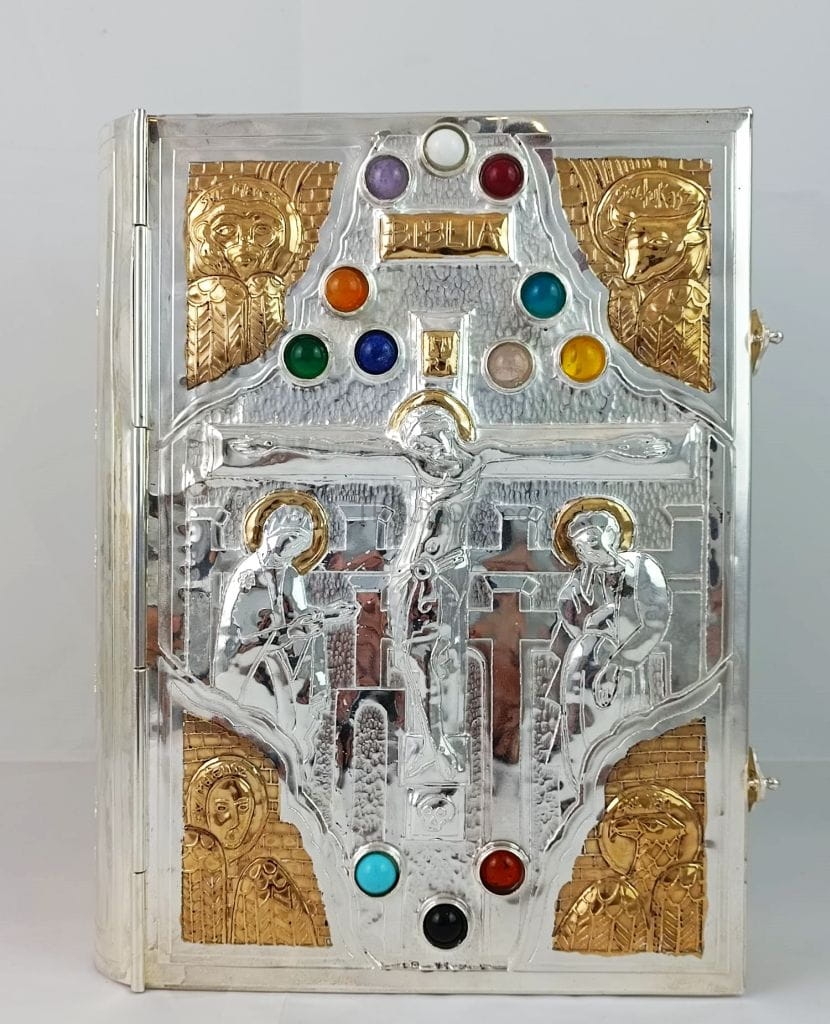 Pozłacana okładka na Biblię Jerozolimską, ewangeliarz z kamieniami, na uroczyste celebracje, srebrna