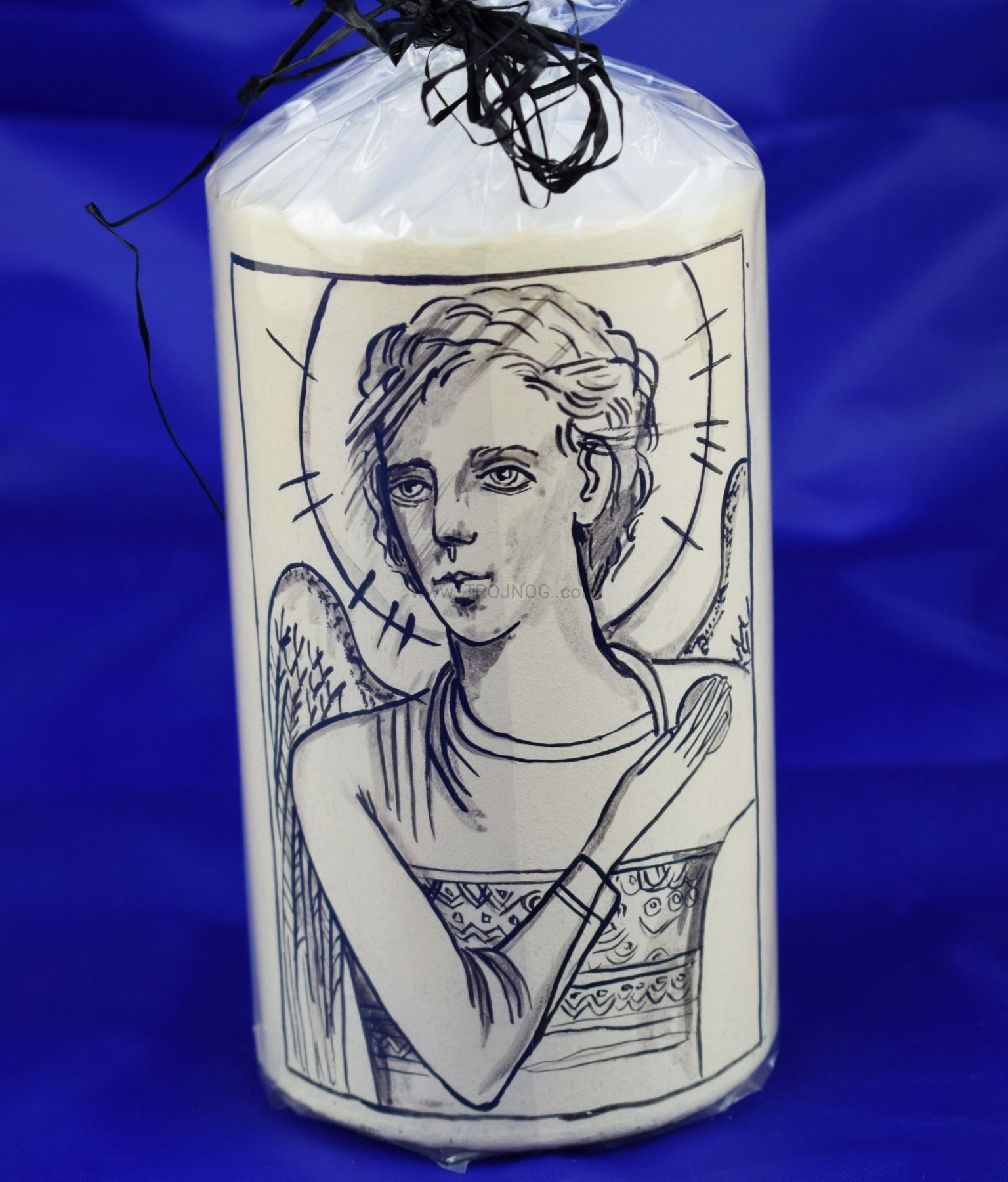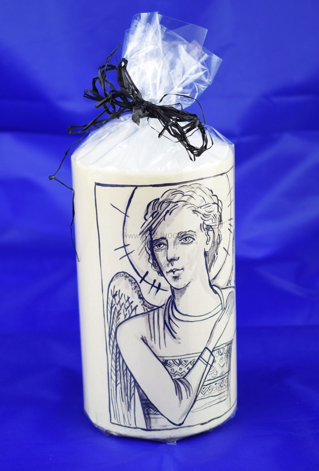 Świeca 15cm na laudesy, z ręcznie pisaną ikoną Anioł Stróż - Kiko