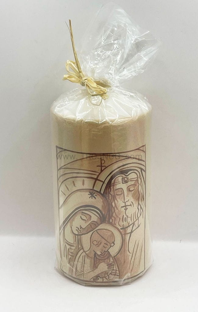 Świeca 15cm na laudesy, z ręcznie pisaną ikoną Święta Rodzina z Nazaretu - Kiko