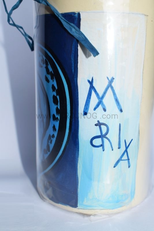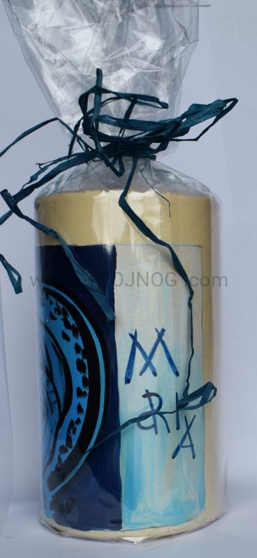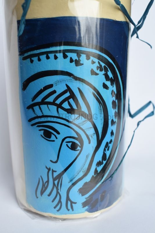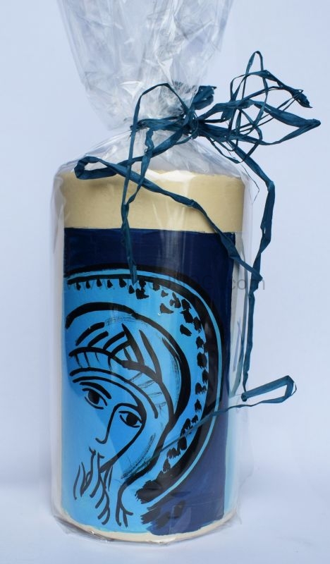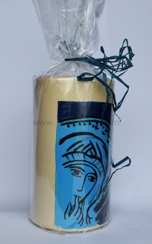 Świeca laudesowa (lub na ołtarz), z ręcznie pisaną ikoną "Madonna del Silenzio" oraz "Ave Maria".