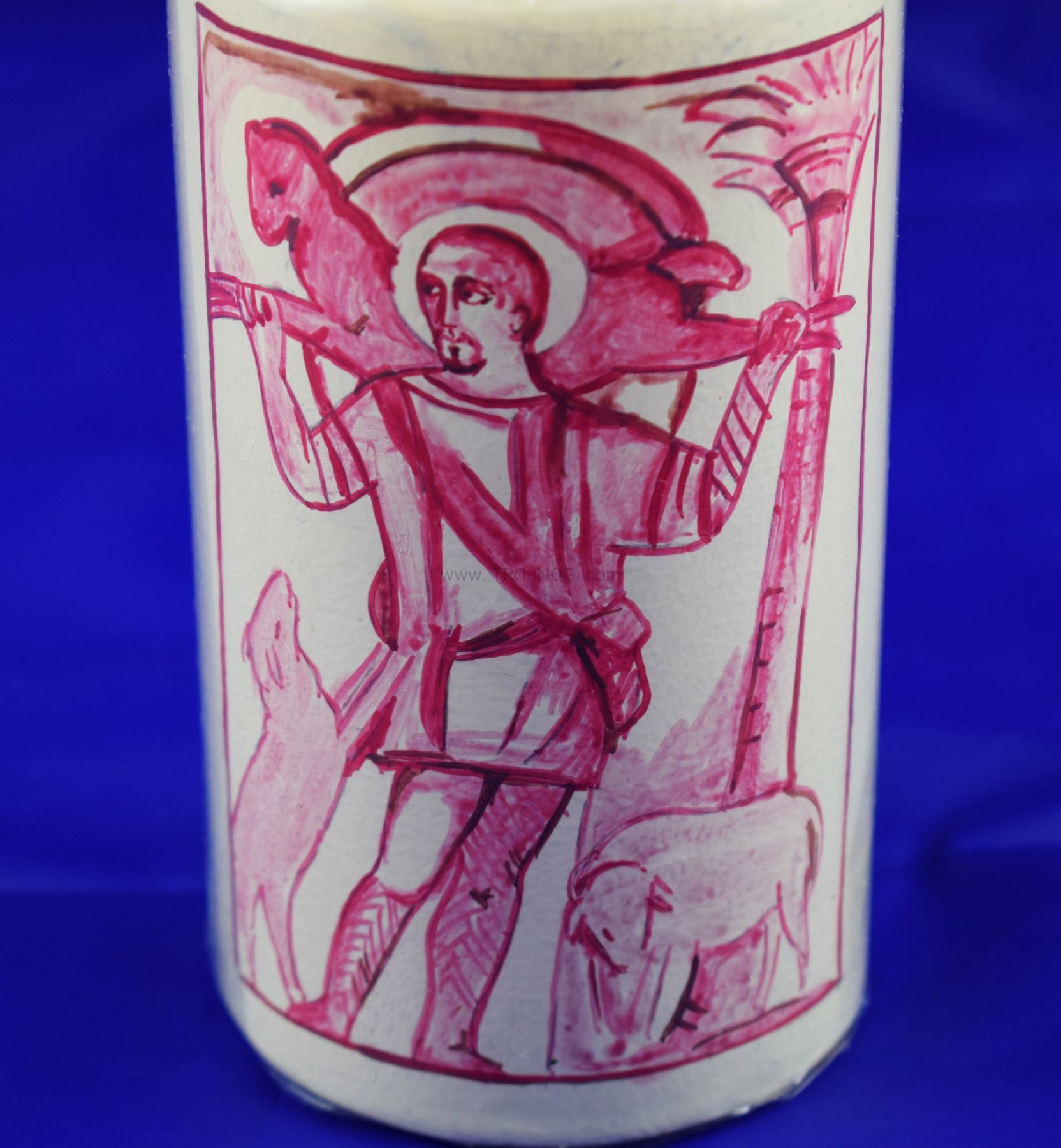 Świeca laudesowa (lub na ołtarz), z ręcznie pisaną ikoną "Dobry Pasterz 1" / "Sługa Jahwe 1".