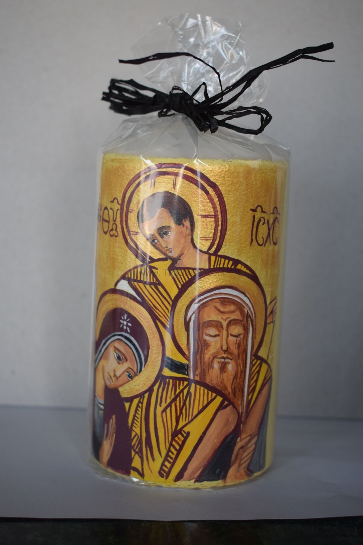Świeca laudesowa (lub na ołtarz), z ręcznie pisaną ikoną "Święta Rodzina Rio".