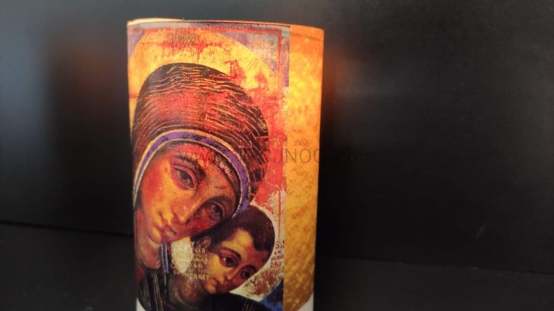 Grubość 8cm świecy zapewnia długi czas palenia - po 30h efekt widoczny na ostatnim zdjęciu - nie ma potrzeby cięcia ikony, jest podświetlana od wewnątrz.