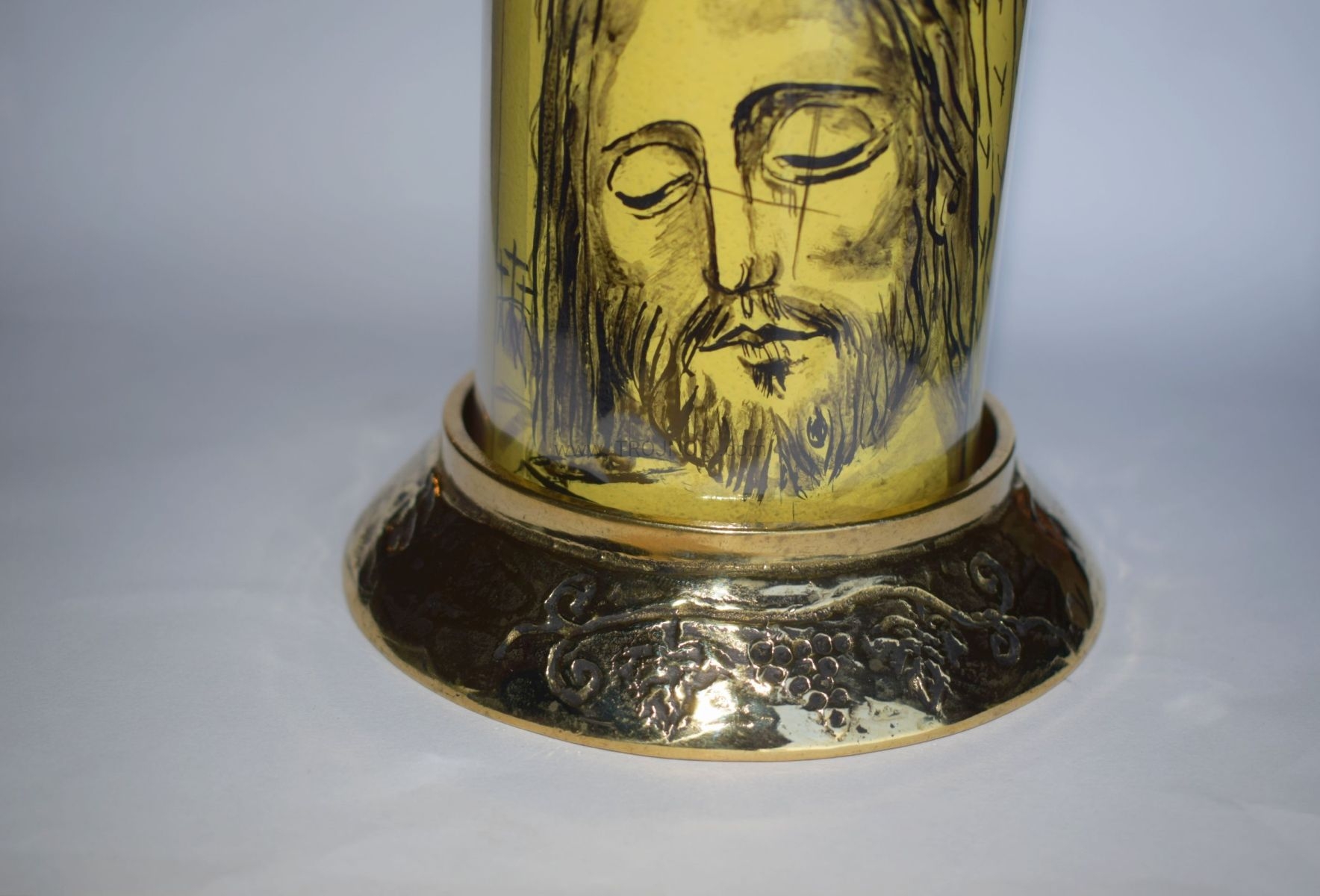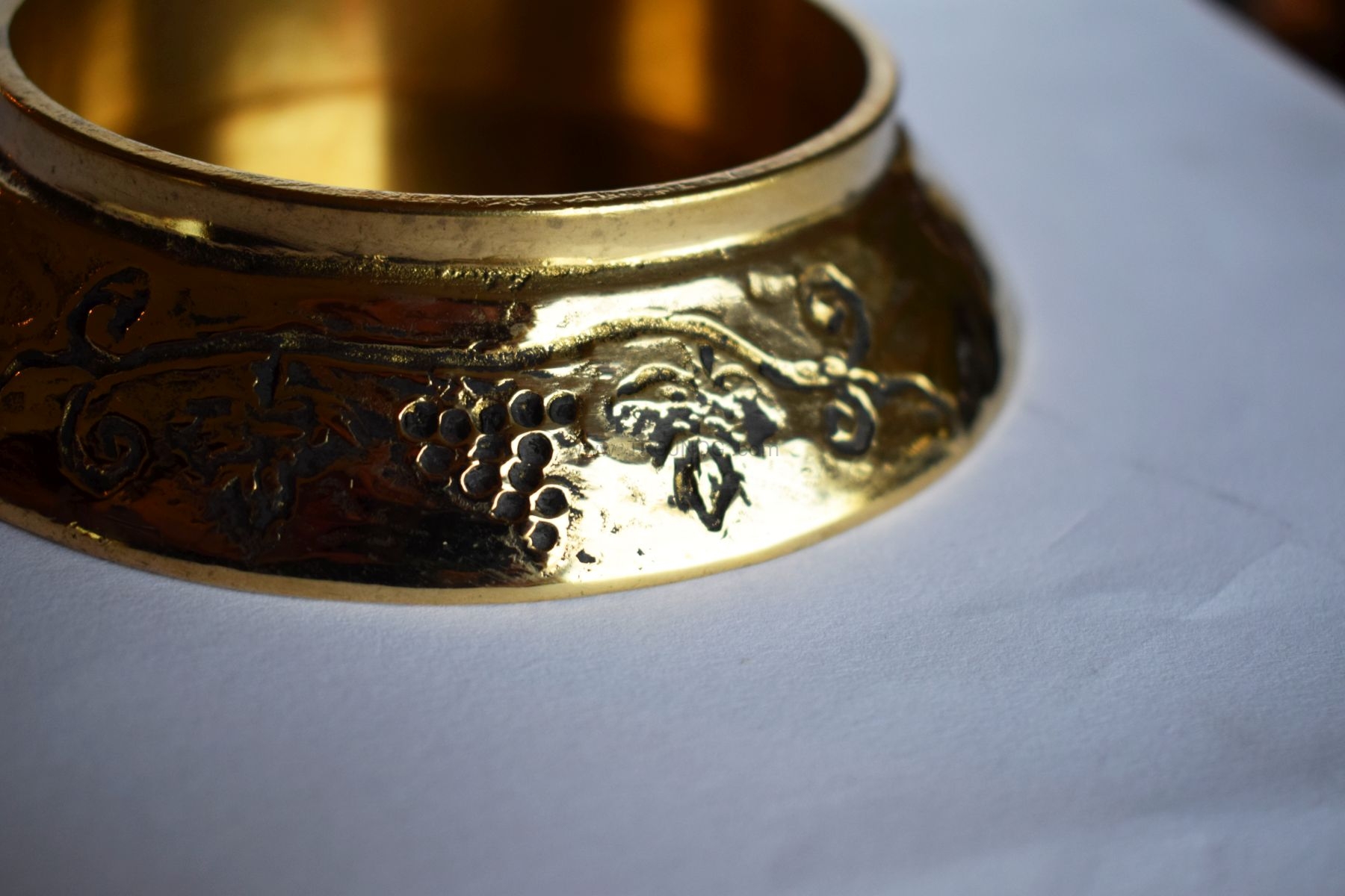Świecznik, podstawa pod świecę z ozdobną ryciną, mosiężna