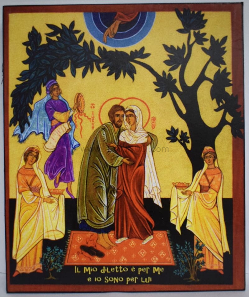 Ikonka drewniana, prezentowa. Wzór - Tobiasz i Sara z Archaniołem Rafałem.